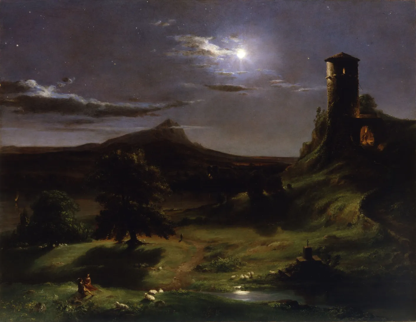 Paysage au clair de lune avec un prieuré en ruinePremière moitié du XIXe siècleSebastian Pether (attribué à)